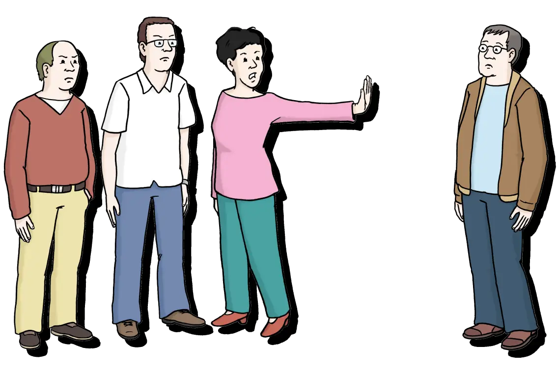 Eine Gruppe nimmt einen Menschen auf.